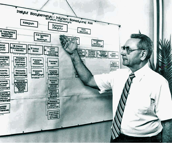 The rapid development and diversification of research topics in the world at that time in the field of materials technology, including semiconductors, cybernetics, automation, systems theory, computer techniques, etc., combined with the creation of interdisciplinary research directions, was the reason for the formation and development of new research teams, including interdisciplinary teams. A corollary of this was the need to reorganize research institutions. This also occurred in Poland, which was reflected in the formation and reorganization of institutes of the Polish Academy of Sciences. In 1971, the Institute of Applied Cybernetics of the Polish Academy of Sciences (ICS PAN) was created from the Institute of Automation of the Polish Academy of Sciences, with Prof. Maciej Nałęcz as director. Research topics conducted at ICS PAN included: (1) methods and devices for measuring various mechanical, electrical, magnetic and optical quantities; (2) use of the obtained measurement signals for various purposes, including biomedical, mainly using electrical methods; (3) computer methods and devices for processing and analyzing biomedical signals and images; (4) cybernetic methods and (5) bionics.