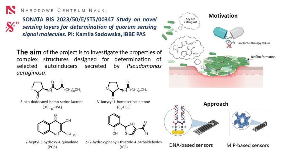 Sonata bis 2023/50/E/ST5/00347 ‘Study on novel sensing layers for determination of quorum sensing signal molecules’ Project leader: Assoc. Prof. Kamila Sadowska, PhD, DSc.