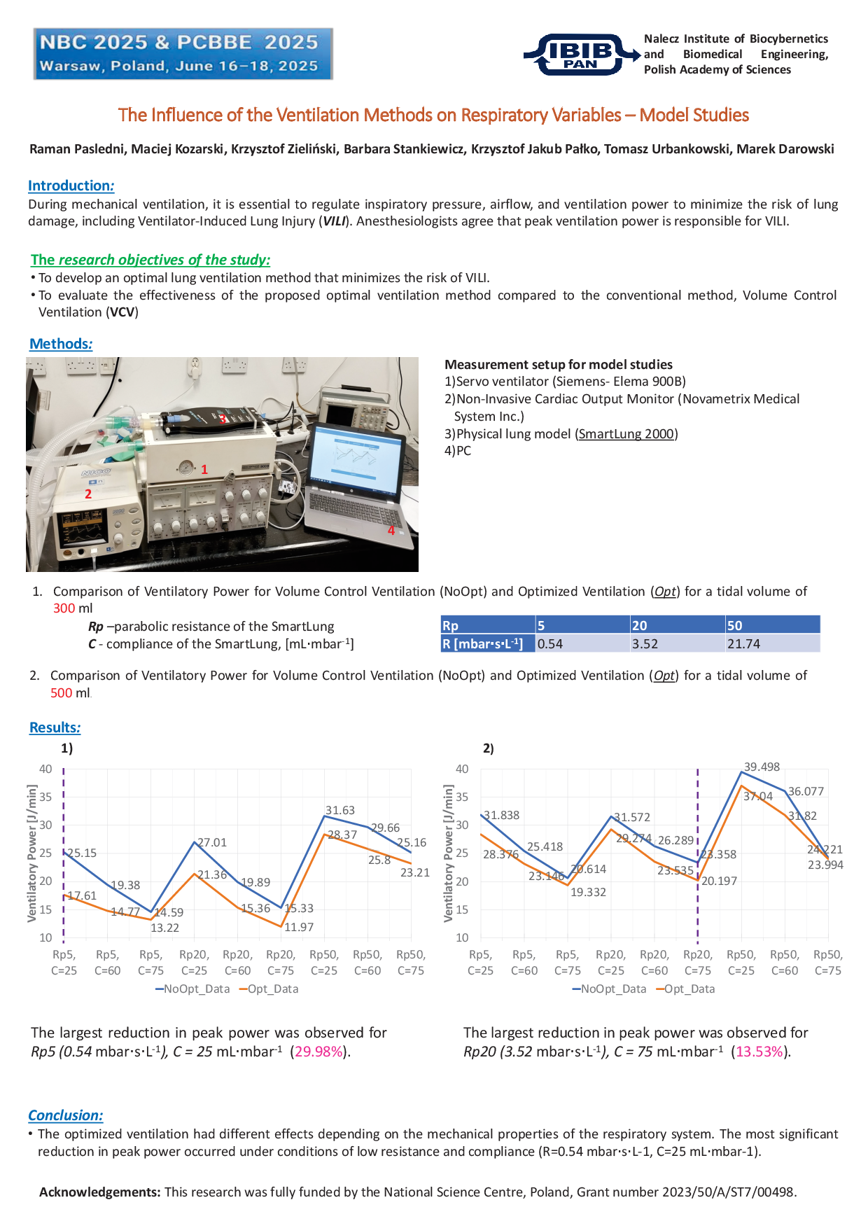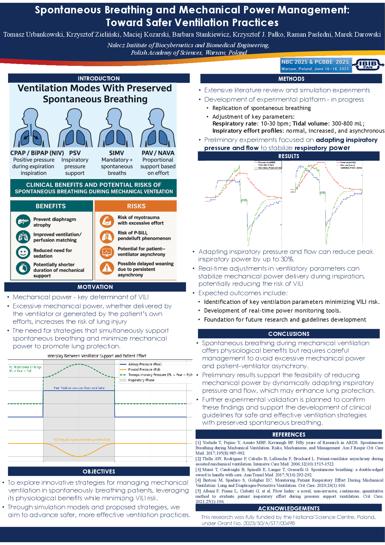 1 Urbankowski Tomasz, Kozarski Maciej, Stankiewicz Barbara, Pasledni Raman, Darowski Marek. Spontaneous Breathing and Mechanical Power Management: Toward Safer Ventilation Practices. Book of Abstracts (P41) of NBC 2025 & PCBBE 2025, June 16-18, 2025, Warsaw, Poland.