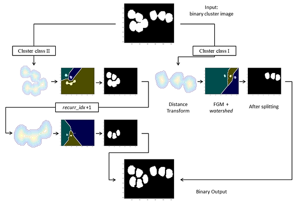 We have developed a method for classifying pre-segmented cells and nuclei using a VGG16-based model. To enhance the training process, we applied a GAN-based augmentation technique developed in our laboratory. The images below illustrate the classification results obtained after segmentation and the previously described declusterization process.