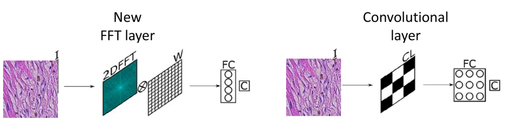 The paper presents a comparison of a new proposed approach that utilizes a connected neural network (NN) processing the Fourier Transform of images instead of the images themselves. Models consisting solely of this novel Fast Fourier Transform (FFT) layer were trained to classify images from publicly available datasets. The classification results were then compared with those of simpler models that included only one convolutional layer. Metrics such as test accuracy, Area Under the Curve (AUC), and training times were used for comparison. The findings indicated that the models employing the proposed FFT layer achieved test accuracies comparable to those of convolutional models—96% versus 98%—while demonstrating at least a 27% reduction in training time per epoch when run on a Central Processing Unit (CPU).