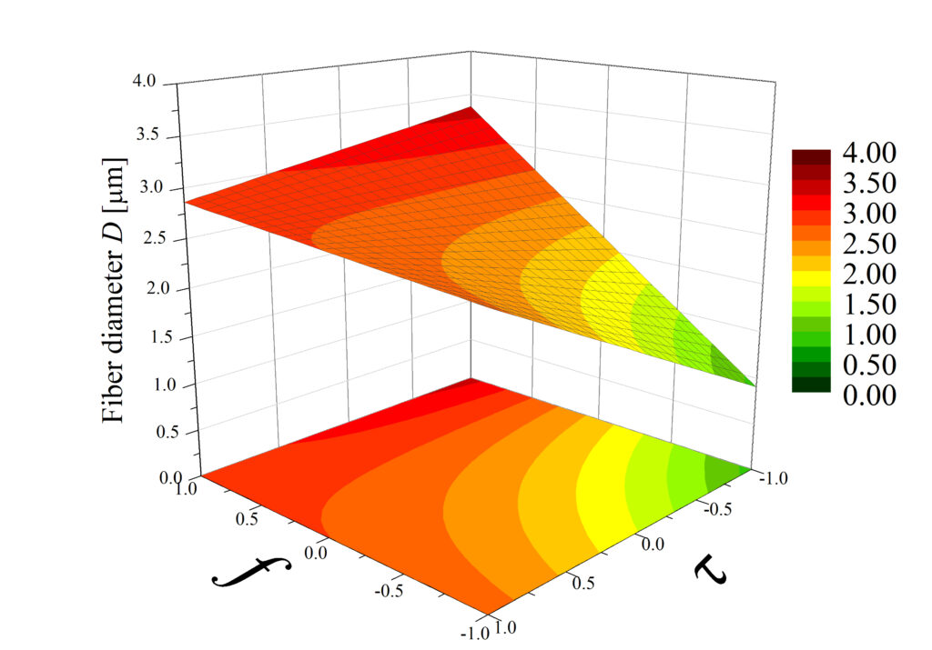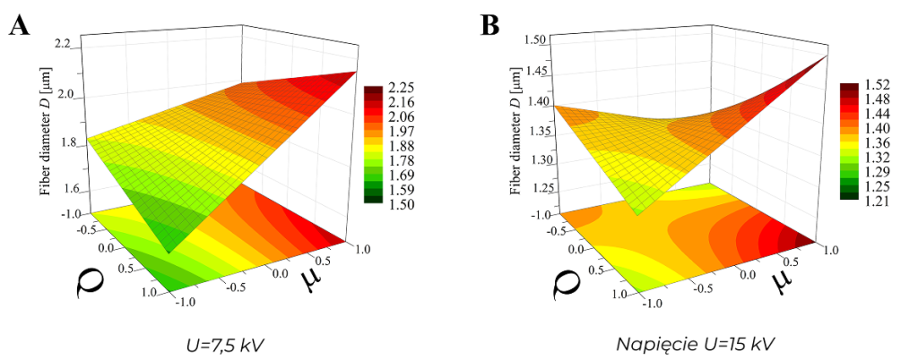 Currently conducted work includes, among others, research on the influence of pulse electrospinning process parameters on the structure of the produced nonwovens. Using multiparametric factor analysis type 23, the following were investigated: