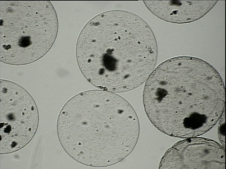Sferyczne mikrokulki polimerowe z polimerów syntetycznych i naturalnych przeznaczone do immobilizacji leków i żywych komórek.