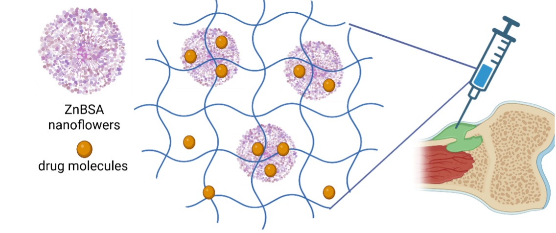 The drug-loaded nanoflowers will be suspended in a hydrogel matrix to create an injectable gel that gradually releases antibiotics at the site of infection. An optimal method for producing the individual components of the drug delivery system will be developed. The drug release profile from the carriers, as well as the stability, degradation time, and antibacterial properties of the developed systems, will be thoroughly investigated.